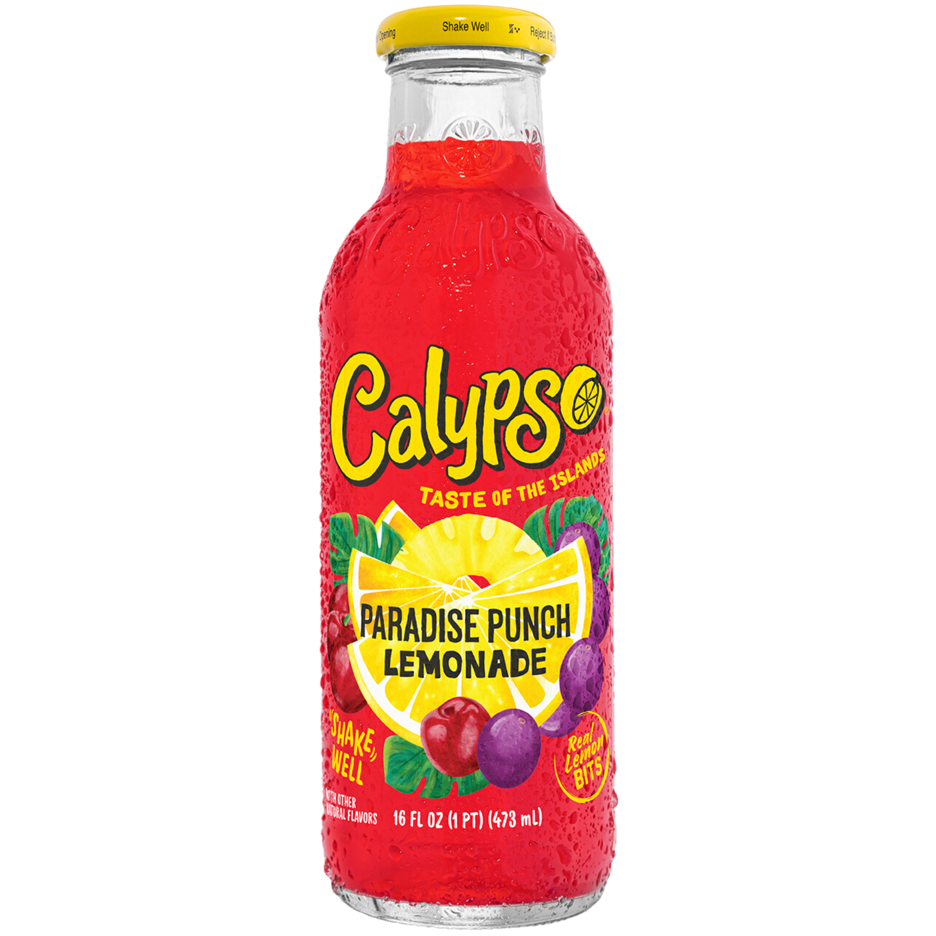 Calypso Paradise Punch ist eine fruchtige Limonade, die fรผr erfrischenden Genuss sorgt โ€“ in einer stylischen Glasflasche.