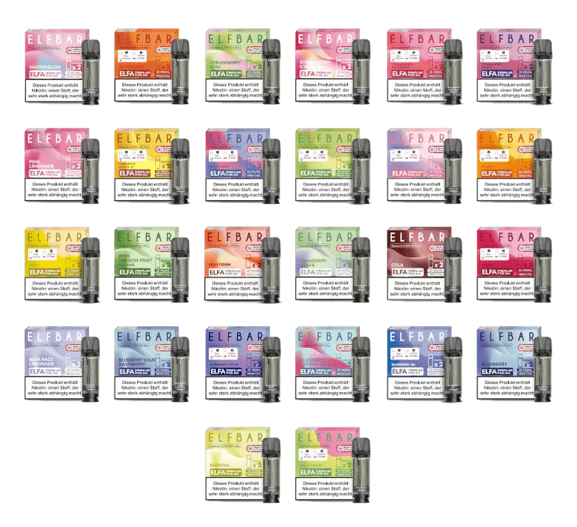 - Vielseitige Geschmacksrichtungen: Elfbar Pods bieten eine Vielzahl an köstlichen Aromen – von fruchtigen und süßen bis hin zu erfrischenden und klassischen Optionen.